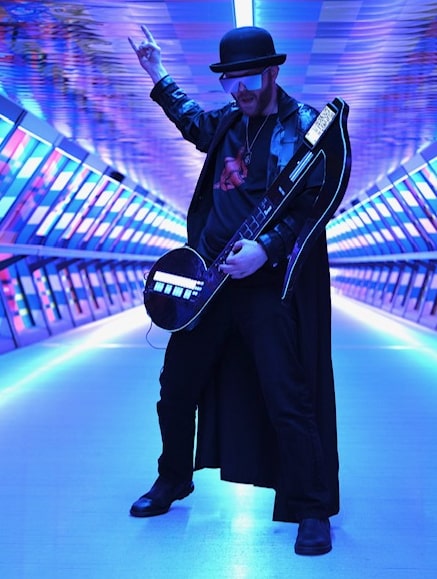 What sets us apart is the fusion of cutting-edge technology and dynamic live performance. Our custom-built instrument, the Musitar, can simulate a wide range of sounds and has been part of our show since 2020.